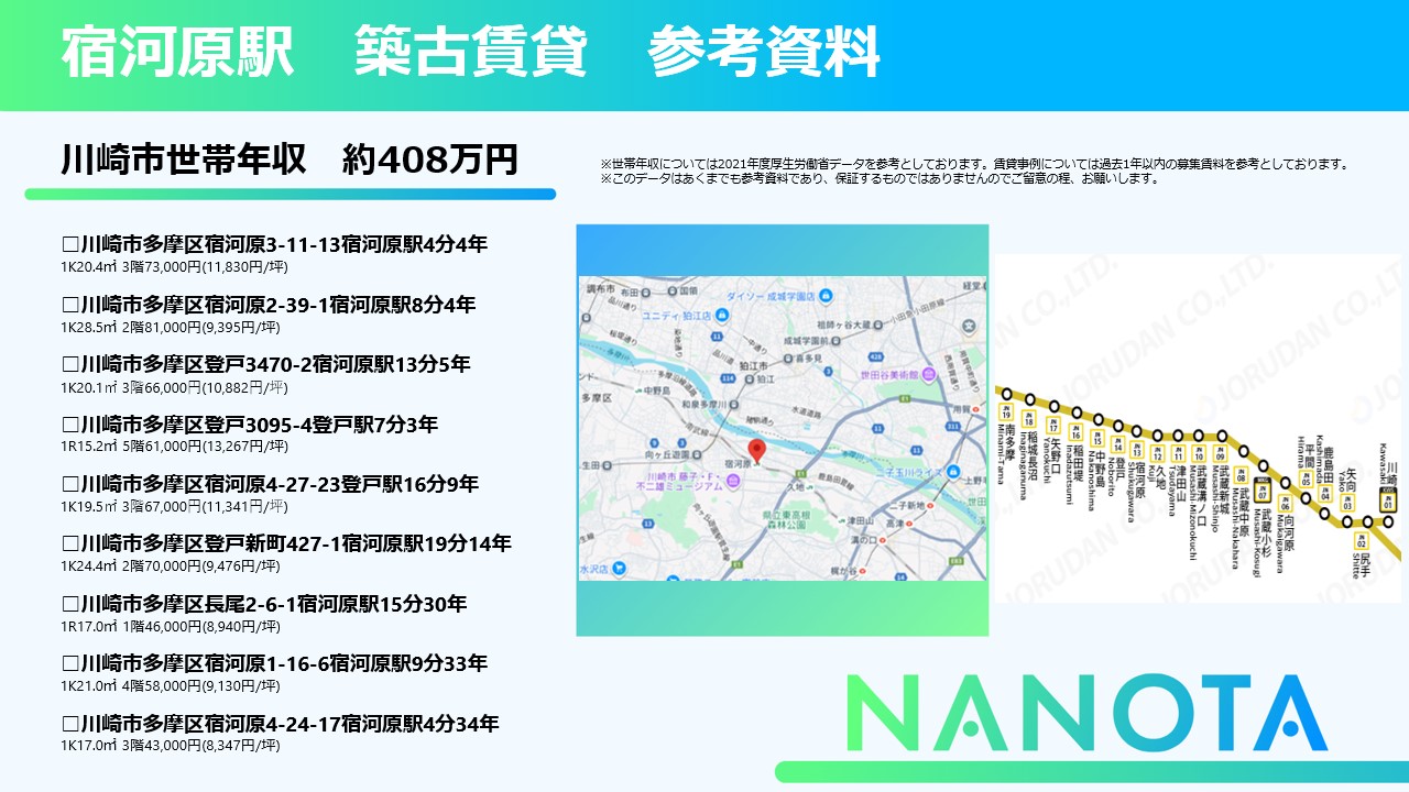 不動産投資MEDIA「NANOTA」では、未公開物件情報や、多数の駅での賃貸参考資料も閲覧可能となります。