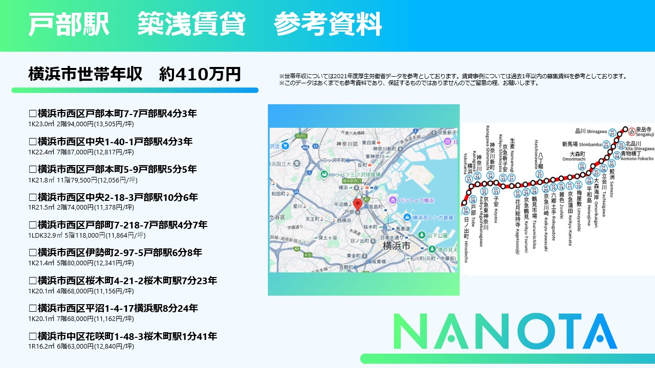 不動産投資MEDIA「NANOTA」では、未公開物件情報や、多数の駅での賃貸参考資料も閲覧可能となります。
