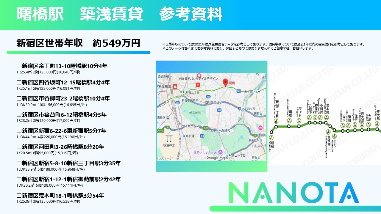 不動産投資MEDIA「NANOTA」では、未公開物件情報や、多数の駅での賃貸参考資料も閲覧可能となります。
