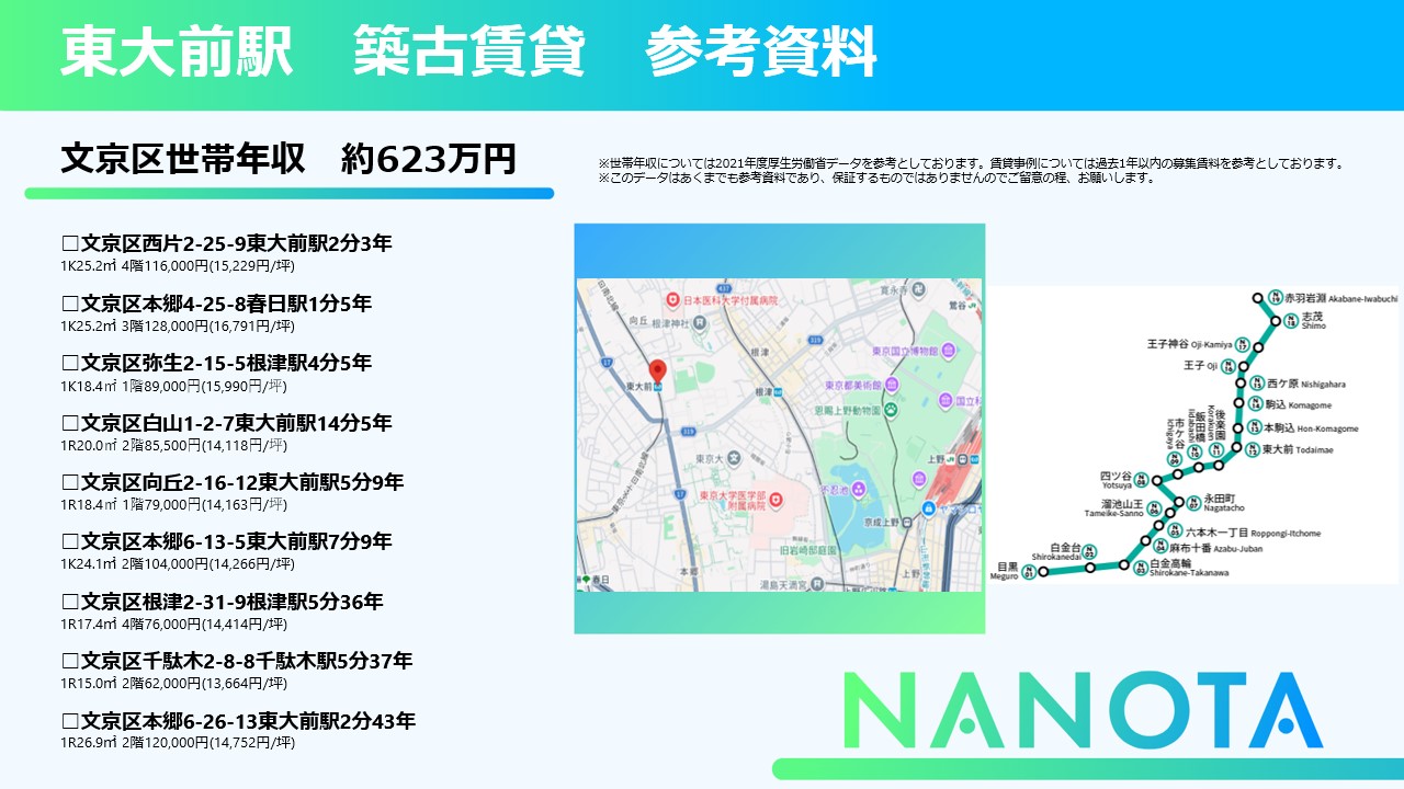 不動産投資MEDIA「NANOTA」では、未公開物件情報や、多数の駅での賃貸参考資料も閲覧可能となります。