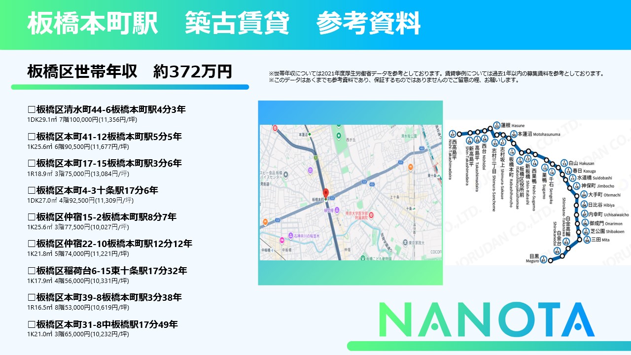 不動産投資MEDIA「NANOTA」では、未公開物件情報や、多数の駅での賃貸参考資料も閲覧可能となります。