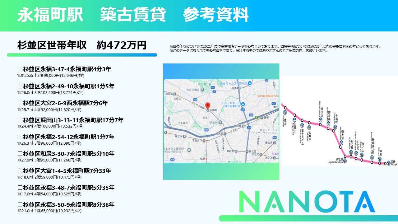 不動産投資MEDIA「NANOTA」では、未公開物件情報や、多数の駅での賃貸参考資料も閲覧可能となります。