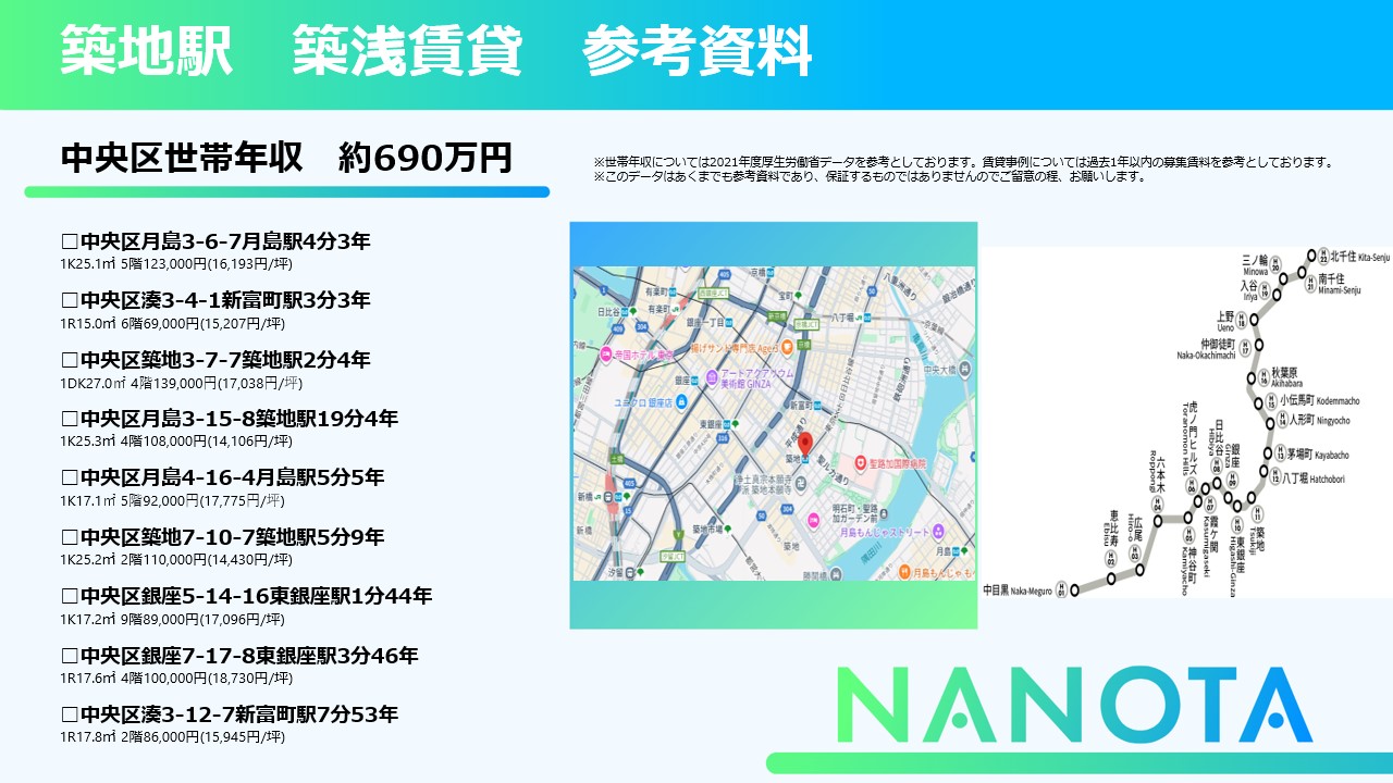 不動産投資MEDIA「NANOTA」では、未公開物件情報や、多数の駅での賃貸参考資料も閲覧可能となります。