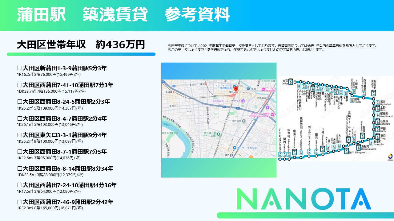 不動産投資MEDIA「NANOTA」では、未公開物件情報や、多数の駅での賃貸参考資料も閲覧可能となります。