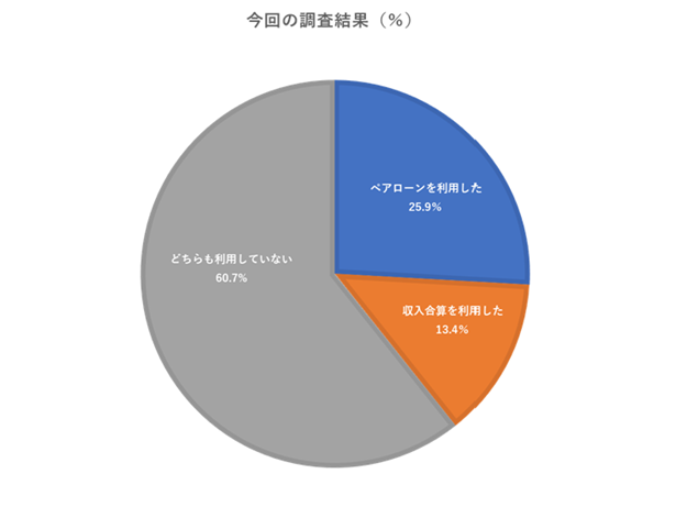 住宅金融支援機構の民間住宅ローン利用者の実態調査によると、共働き世帯の増加に伴い、夫婦それぞれが主債務者となるペアローンや、夫婦の収入を合算して借り入れる収入合算の利用は39.3%です。20代で44%、30代で29.6%と若い世代で利用割合が高くなり、地価の高い首都圏や近畿圏のマンション購入層では、ペアローンが「前提」となっているケースも珍しくありません。